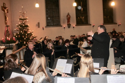 In dem bis auf den letzten Platz besetzten Gotteshaus ließ die Musikkapelle zum Auftakt »Hebe deine Augen auf« aus Mendelssohns Elias-Oratorium erklingen. Das Stück lebte in der Blasorchesterversion von spannenden Harmonien, die Dirigent Marcus Greim dynamisch sorgfältig herausarbeiten ließ - wie aus dem Nichts kommend, dann klang- und kraftvoll. Ferner brachten die Musiker zwei moderne Balladen dar. Hier gefielen die melodiösen Solopassagen der Klarinetten besonders. Bewegt und bewegend die Interpretation von »Il signore è con te« - die zweite Zeile des Ave Maria - und das vom Gospel inspirierte »Lead me home«.