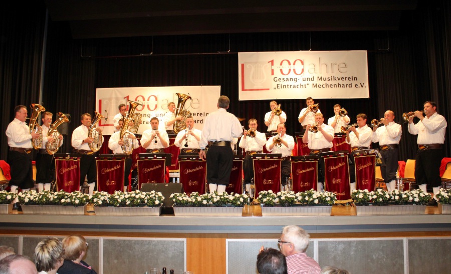 Der Gesang- und Musikverein Eintracht Mechenhard, der in diesem Jahr sein 100-jähriges Bestehen feiert, hat am Samstagabend beim Konzert zum Jubiläum mit Anton Gälle und seiner Scherzachtaler Blasmusik in der seit Januar ausverkauften Erlenbacher Frankenhalle rund 500 Gästen und sich selbst ein wunderbares Geburtstagsgeschenk gemacht.