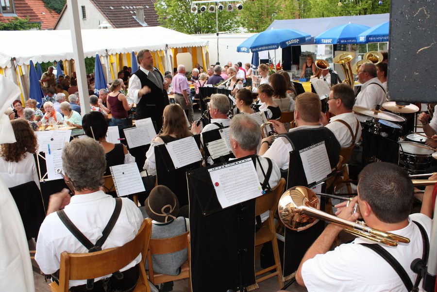 Die befreundete Kapelle heizte mit schwungvoller Blasmusik und aktuellen Hits, darunter Helene Fischers „Atemlos“, die Stimmung an und animierte die Festbesucher bis in die frühen Morgenstunden zum Feiern, Tanzen und Singen in lauer Sommernacht.