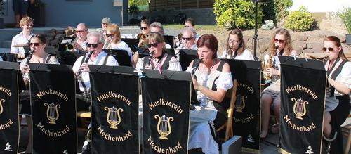 Konzert: Zuhörer genießen Serenade des Mechenharder Gesang- und Musikvereins im Winzerhof Zöller