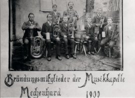 Um die Jahrhundert- wende, genauer gesagt im Mai des Jahres 1900, gründeten sieben junge Burschen die Musikkapelle im Spessartdorf Mechen- hard, das zu dieser Zeit ca. 250 Einwohner hatte. Es war dies der zweite Versuch, denn etwa 15 Jahre vorher war die Gründung der Musikkapelle an dem bezeichnenden Machtwort des Ortspfarrers Ignaz Frankenberger gescheitert: "Wer eine Teufelsmusik macht, kann nicht auch noch Kirchenmusik machen."